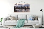 L'affiche textile est imprimée sur une toile solide avec deux lattes de bois vierges en haut et en bas. Une ficelle est attachée aux lattes, de sorte que la commission scolaire puisse être facilement suspendue. Les affiches textiles de TextilePosters sont disponibles dans plus de 25 tailles différentes. En plus des lattes en bois vierges, les affiches textiles sont également disponibles avec des lattes noires ou blanches.