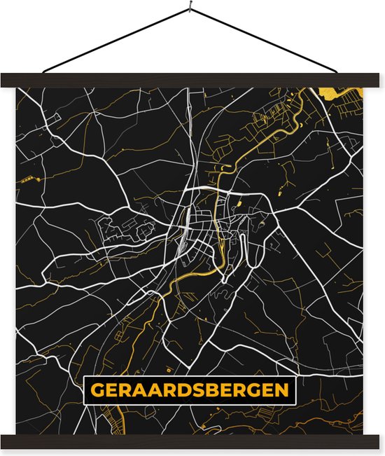 Porte-affiche avec affiche - Affiche scolaire - Or - Plan de la ville - Geraardsbergen - Carte - Carte - 40x40 cm - Lattes noires