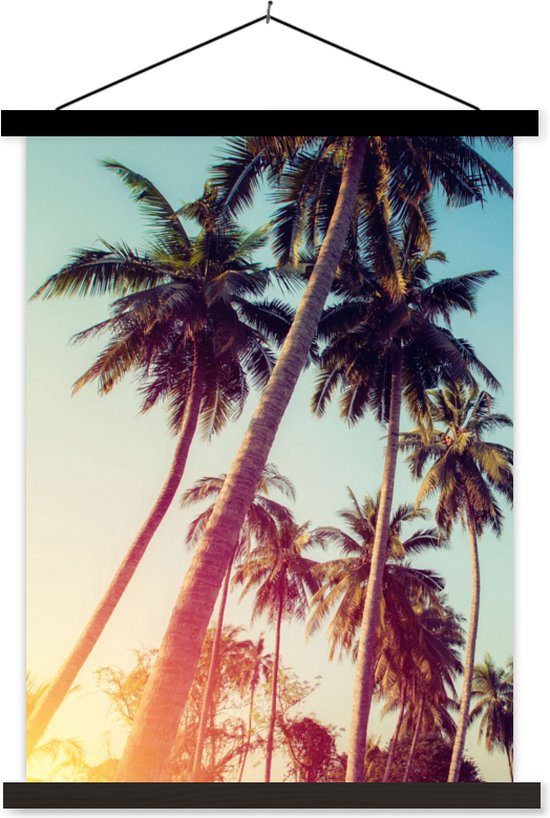 Porte-affiche avec affiche - Affiche scolaire - Palmier - Été - Rétro - Soleil - 90x120 cm - Lattes noires