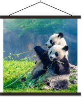 Porte-affiche avec affiche - Affiche scolaire - Panda - Bamboe - Herbe - Animaux - 60x30 cm - Lattes noires