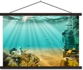 Porte-affiche avec affiche - Affiche scolaire - Pêche - Mer - Aquarelle - Pastel - 150x75 cm - Lattes noires