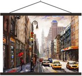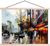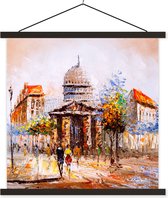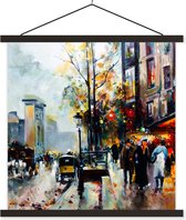 Porte-affiche avec affiche - Affiche scolaire - Peinture - Ville - Peinture à l'huile - 40x30 cm - Lattes noires