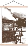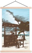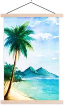 Porte-affiche avec affiche - Affiche scolaire - Plage - Cabane - Palmier - 40x60 cm - Lattes vierges