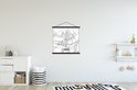 L'affiche textile est imprimée sur une toile robuste avec deux lattes noires en haut et en bas. Une ficelle est attachée aux lattes, de sorte que la commission scolaire puisse être facilement suspendue. Les affiches textiles de TextilePosters sont disponibles dans plus de 25 tailles différentes. En plus des lattes noires, les affiches textiles sont également disponibles avec des lattes en bois blanches ou claires.