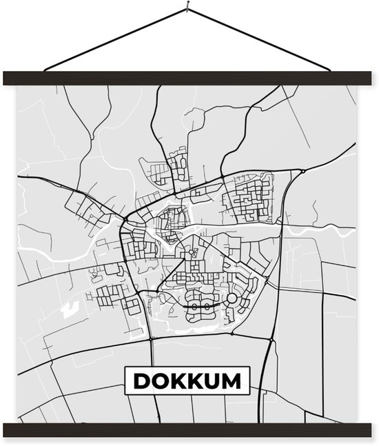 Porte-affiche avec affiche - Affiche scolaire - Plan de la ville - Dokkum - Grijs - Wit - 60x60 cm - Lattes noires