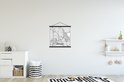 - L' textielposter est disponible avec des lattes de bois noires et blanches