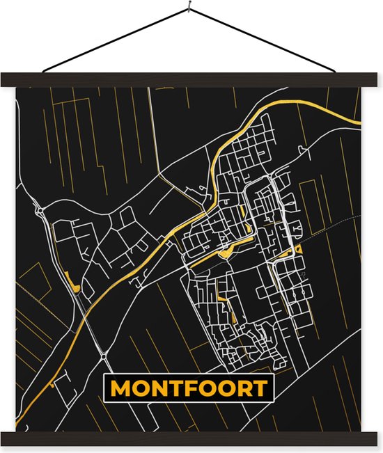Porte-affiche avec affiche - Affiche scolaire - Plan de la ville - Montfoort - Or - Carte - Carte - 40x40 cm - Lattes noires