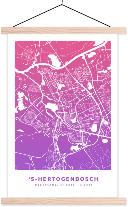 Porte-affiche avec affiche - Affiche scolaire - Plan de la ville - 's-Hertogenbosch - Nederland - Violet - 40x60 cm - Lattes transparentes