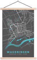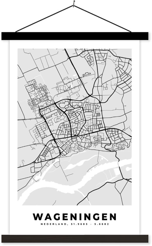 Porte-affiche avec affiche - Affiche scolaire - Plan de la ville - Wageningen - Grijs - Wit - 40x60 cm - Lattes noires