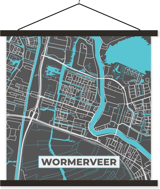 Porte-affiche avec affiche - Affiche scolaire - Plan de la ville - Wormerveer - Carte - Carte - 90x90 cm - Lattes noires