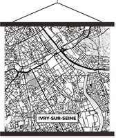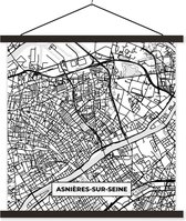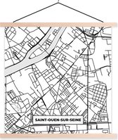 Porte-affiche avec Affiche - Affiche scolaire - Plan - Plan de ville - Saint-Ouen-sur-Seine - France - Carte - Zwart et blanc - 60x60 cm - Lattes noires