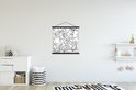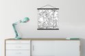 - L' textielposter est disponible avec des lattes de bois noires et blanches