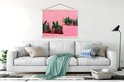 L'affiche textile est imprimée sur une toile solide avec deux lattes de bois vierges en haut et en bas. Une ficelle est attachée aux lattes, de sorte que la commission scolaire puisse être facilement suspendue. Les affiches textiles de TextilePosters sont disponibles dans plus de 25 tailles différentes. En plus des lattes en bois vierges, les affiches textiles sont également disponibles avec des lattes noires ou blanches.