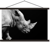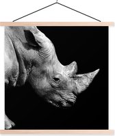 Affiche textile - Portrait photo rhinocéros sur fond noir en noir et blanc - Posterhanger
