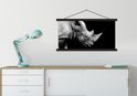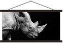 Porte-affiche avec affiche - Affiche scolaire - Portrait photo rhinocéros sur fond noir en noir et blanc - 90x45 cm - Lattes noires