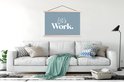 L'affiche textile est imprimée sur une toile solide avec deux lattes de bois vierges en haut et en bas. Une ficelle est attachée aux lattes, de sorte que la commission scolaire puisse être facilement suspendue. Les affiches textiles de TextilePosters sont disponibles dans plus de 25 tailles différentes. En plus des lattes en bois vierges, les affiches textiles sont également disponibles avec des lattes noires ou blanches.
