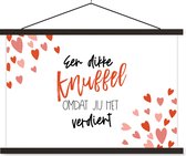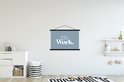 L'affiche textile est imprimée sur une toile robuste avec deux lattes noires en haut et en bas. Une ficelle est attachée aux lattes, de sorte que la commission scolaire puisse être facilement suspendue. Les affiches textiles de TextilePosters sont disponibles dans plus de 25 tailles différentes. En plus des lattes noires, les affiches textiles sont également disponibles avec des lattes en bois blanches ou claires.