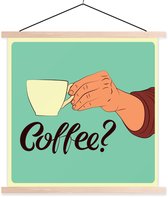 Citation Vintage : ' Coffee?' avec une main tenant une tasse de café.