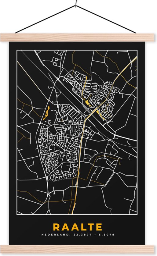 Porte-affiche avec affiche - Affiche scolaire - Raalte - Black and Gold et or - Plan de la ville - Plan d'étage - Carte - 40x60 cm - lattes vierges