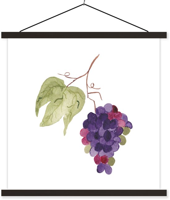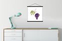 Porte-affiche avec affiche - Affiche scolaire - Raisins - Feuilles - Aquarelle - 60x60 cm - Lattes noires