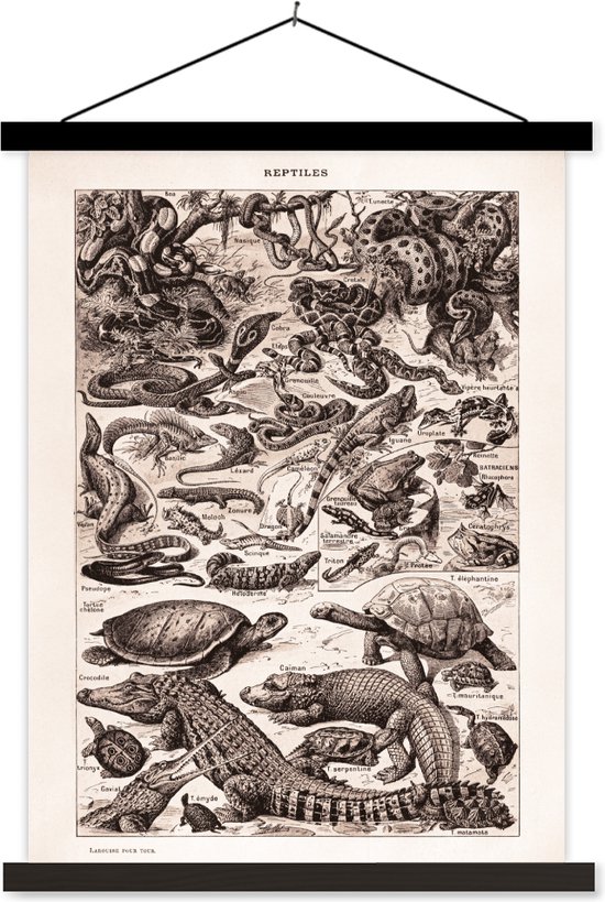 Porte-affiche avec affiche - Affiche scolaire - Reptiles - Animaux - Zwart - Wit - 120x160 cm - Lattes noires