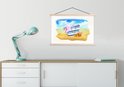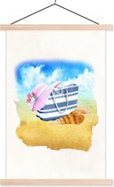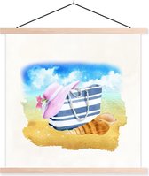 Porte-affiche avec affiche - affiche scolaire - sac - chapeau - coquillage - plage - 90x60 cm - lattes vierges