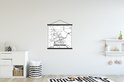 L'affiche textile est imprimée sur une toile robuste avec deux lattes noires en haut et en bas. Une ficelle est attachée aux lattes, de sorte que la commission scolaire puisse être facilement suspendue. Les affiches textiles de TextilePosters sont disponibles dans plus de 25 tailles différentes. En plus des lattes noires, les affiches textiles sont également disponibles avec des lattes en bois blanches ou claires.