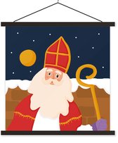 Porte-affiche avec affiche - Affiche scolaire - Sinterklaas - Décoration - Sint - 60x40 cm - Lattes noires