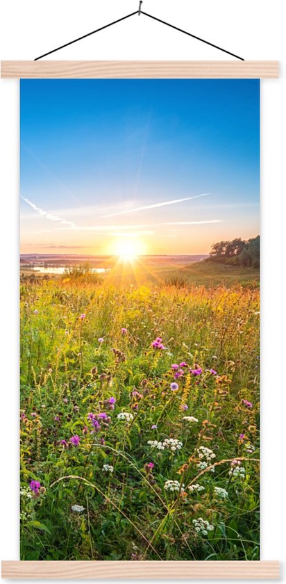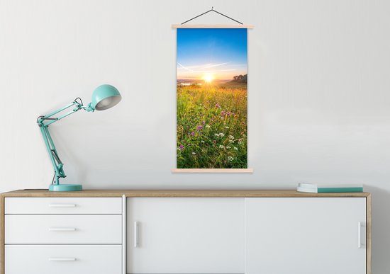 Porte-affiche avec affiche - Affiche scolaire - Soleil - Herbe - Fleurs - 60x120 cm - lattes vierges