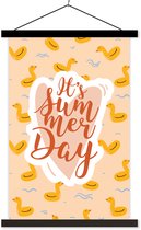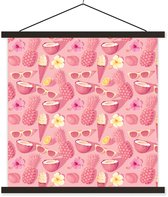 Porte-affiche avec affiche - Affiche scolaire - Soleil - Rose - Été - 40x40 cm - Lattes noires