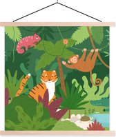 Porte-affiche avec affiche - Affiche scolaire - Tigre - Feuilles - Jungle - Animaux - Sauvage - 40x40 cm - Lattes transparentes
