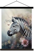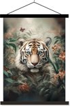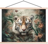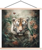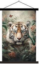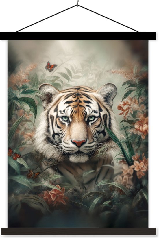 Porte-affiche avec affiche - Affiche scolaire - Tigre - Papillons - Animaux - Jungle - Fleurs - 60x80 cm - Lattes noires