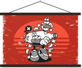 L'affiche textile est imprimée sur une toile robuste avec deux lattes noires en haut et en bas. Une ficelle est attachée aux lattes, de sorte que la commission scolaire puisse être facilement suspendue. Les affiches textiles de TextilePosters sont disponibles dans plus de 25 tailles différentes. En plus des lattes noires, les affiches textiles sont également disponibles avec des lattes en bois blanches ou claires.