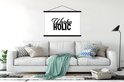 - L' textielposter est disponible avec des lattes de bois noires et blanches