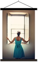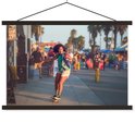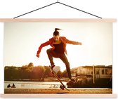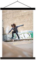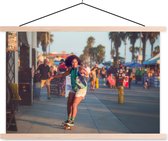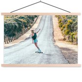 Porte-affiche avec affiche - Affiche scolaire - Une jeune femme fait du skateboard sur le trottoir - 60x40 cm - Lattes noires