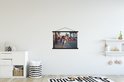 L'affiche textile est imprimée sur une toile robuste avec deux lattes noires en haut et en bas. Une ficelle est attachée aux lattes, de sorte que la commission scolaire puisse être facilement suspendue. Les affiches textiles de TextilePosters sont disponibles dans plus de 25 tailles différentes. En plus des lattes noires, les affiches textiles sont également disponibles avec des lattes en bois blanches ou claires.