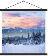 Porte-affiche avec affiche - Affiche scolaire - Vogel - Mésange charbonnière - Hiver - Neige - Branches - 60x60 cm - Lattes noires