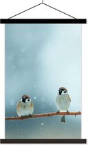 Affiche textile - Vogels - Moineau - Neige - Hiver - Porte affiche