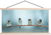 Affiche textile - Vogels - Moineau - Neige - Hiver - Porte affiche