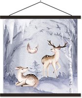 Porte-affiche avec affiche - Affiche scolaire - Vogels - Moineau - Neige - Hiver - 60x60 cm - Lattes noires