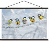 Affiche textile - Vogels - Moineau - Neige - Hiver - Porte affiche