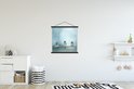 - L' textielposter est disponible avec des lattes de bois noires et blanches