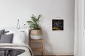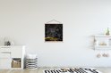 - L' textielposter est disponible avec des lattes de bois noires et blanches