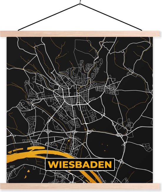 Porte-affiche avec affiche - Affiche scolaire - Wiesbaden - Allemagne - Carte - Or - Carte - Plan de la ville - 40x40 cm - lattes vierges
