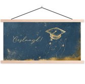 L'affiche textile est imprimée sur une toile solide avec deux lattes de bois vierges en haut et en bas. Une ficelle est attachée aux lattes, de sorte que la commission scolaire puisse être facilement suspendue. Les affiches textiles de TextilePosters sont disponibles dans plus de 25 tailles différentes. En plus des lattes en bois vierges, les affiches textiles sont également disponibles avec des lattes noires ou blanches.