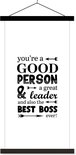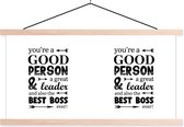 Porte-affiche avec poster - Affiche scolaire - Dictons - "Tu es une bonne personne et un grand leader et aussi le meilleur patron de tous les temps" - Citations - 60x120 cm - Lattes noires