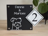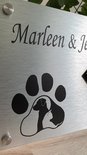 Plaque signalétique porte d'entrée Maison - Signe - Nom et numéro de maison - 15 x 15 cm - Aluminium brossé - Patte de chien - Incl. Kit de montage + entretoises inox