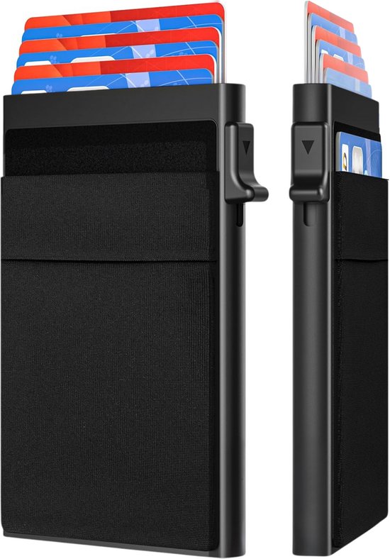 Porte-cartes LAANAR® en aluminium pour homme et femme - Porte-cartes extensible Pop up - Billets et pièces + 10 cartes - Porte-cartes de crédit Protection RFID - Porte-cartes Extra robuste