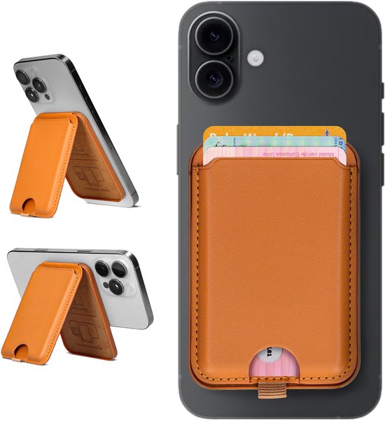 Porte-cartes QuickWallet MagSafe - Porte-cartes MagSafe - Portefeuille MagSafe - Porte-cartes magnétique - MagSafe Standard - Portefeuille MagSafe avec support - Cuir - Marron