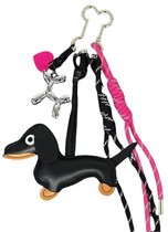 Porte-clés/accroche-sac avec teckel rose et anneau doré